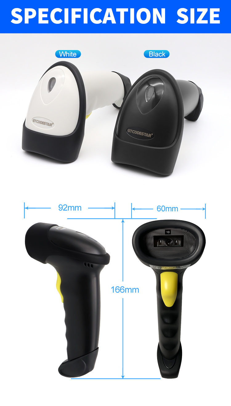 | Scanning Depth | Code128 4.17mil 15byte: 5 -- 12 cm Code128 5.83mil 15byte: 5 -- 16 cm EAN-13 4.17mil : 3 -- 14 cm Code39 5.83mil 14byte: 5-- 18 cm | ||||||