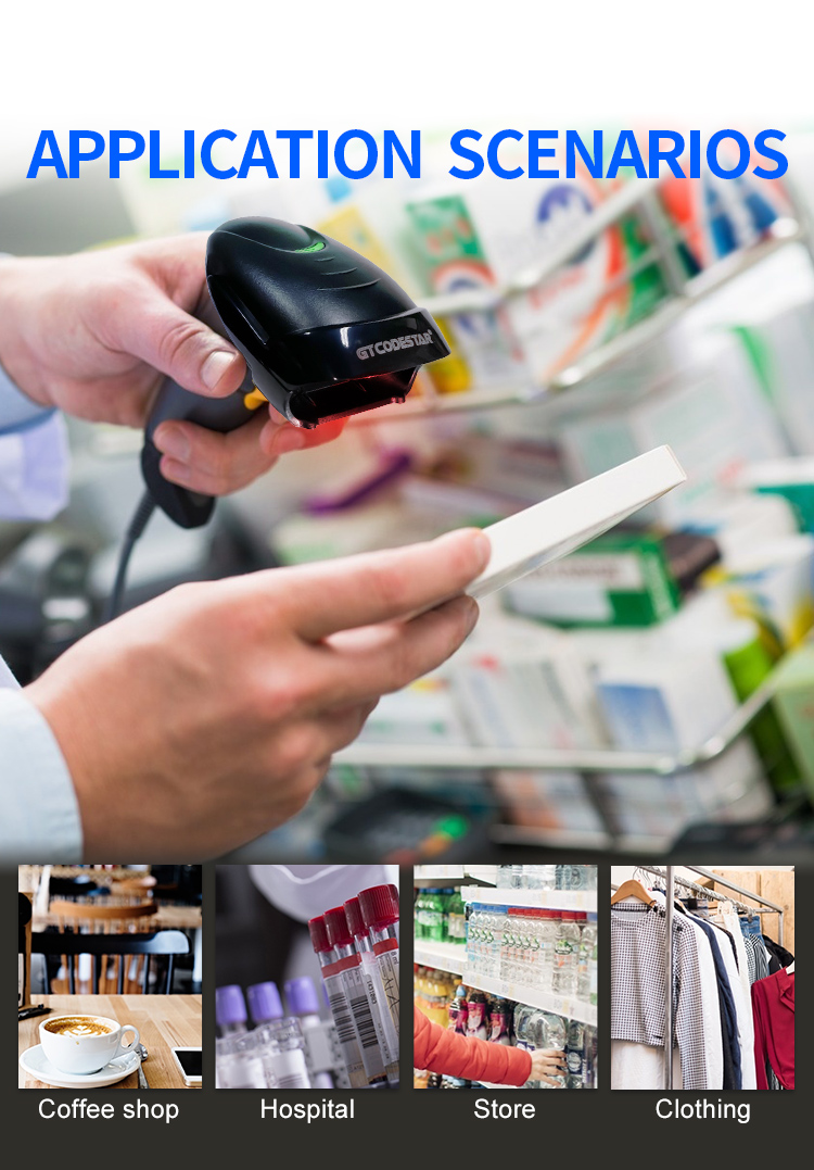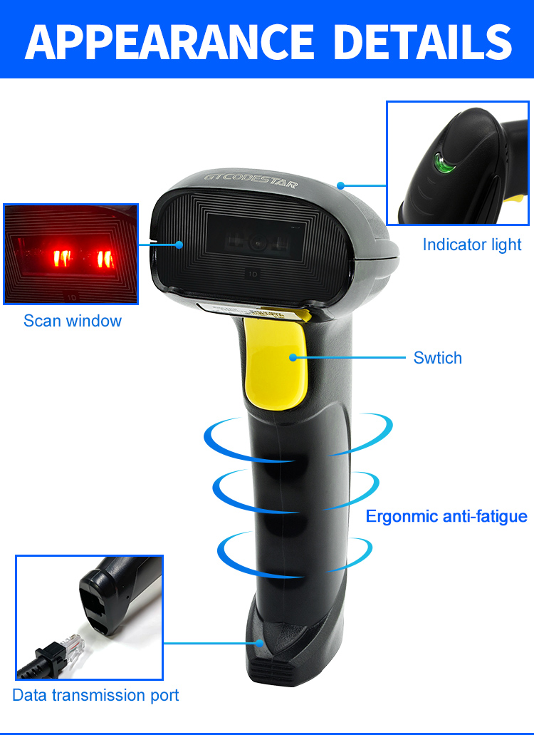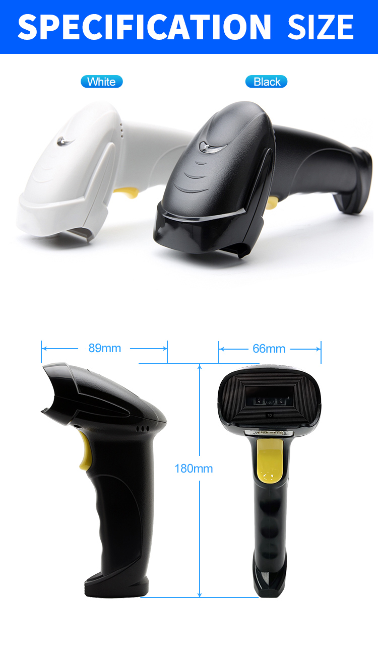 | Scanning Depth | Code39 5mil:6 - 9 cm Code39 10mil:14 - 20 cm | ||||||