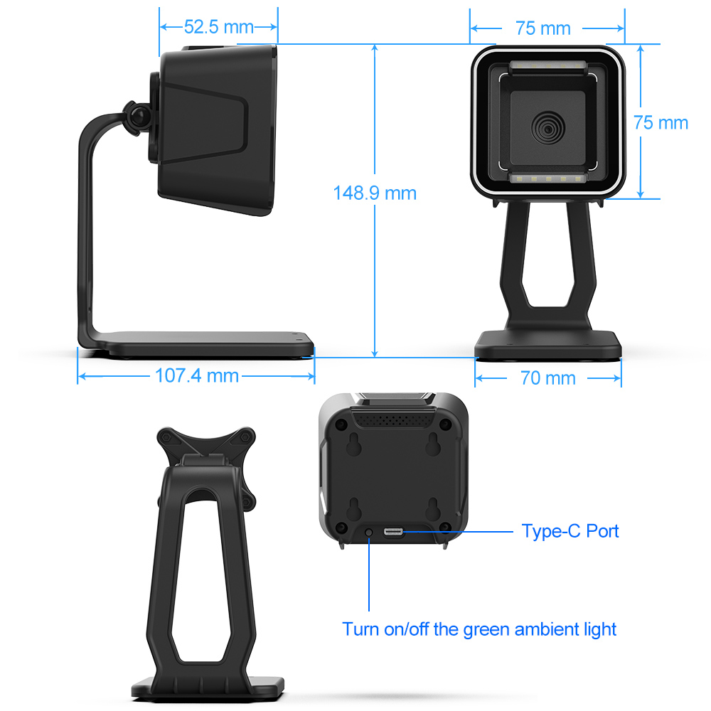 | Scanning Depth | QR 14mil:1cm - 12cm Wechat payment code:1cm - 30cm | ||