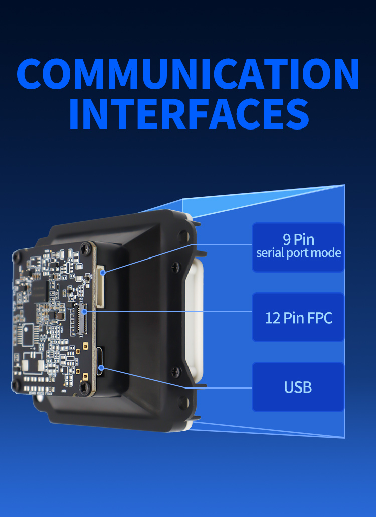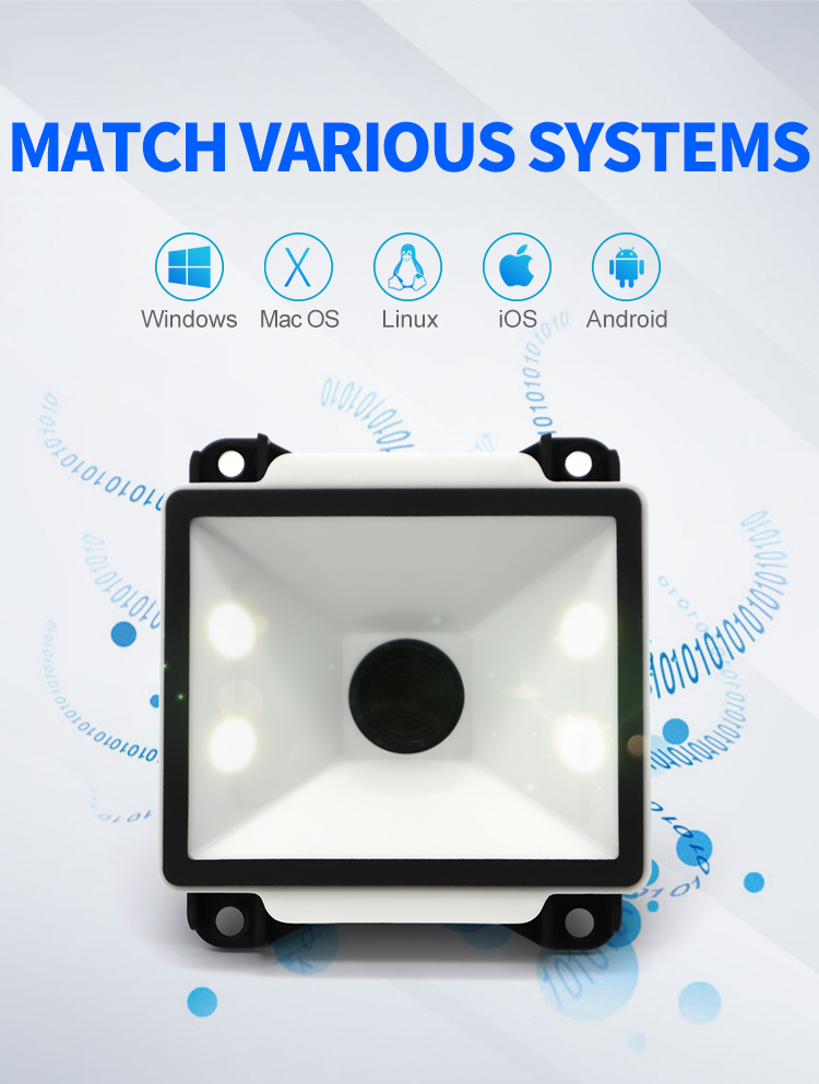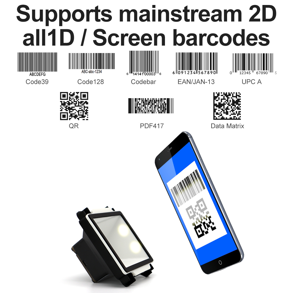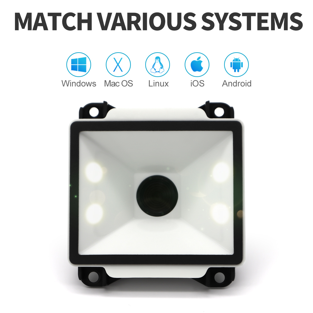| Depth of field | QR 10.83mil (8 bytes) 2cm - 6cm Code128 5.83mil (15 bytes) 3.5cm - 5cm Code28 10.83mil (16 bytes) 5cm - 12cm Wechat payment one-dimensional code 3cm - 20cm Wechat payment QR code 3cm - 30cm | ||||||