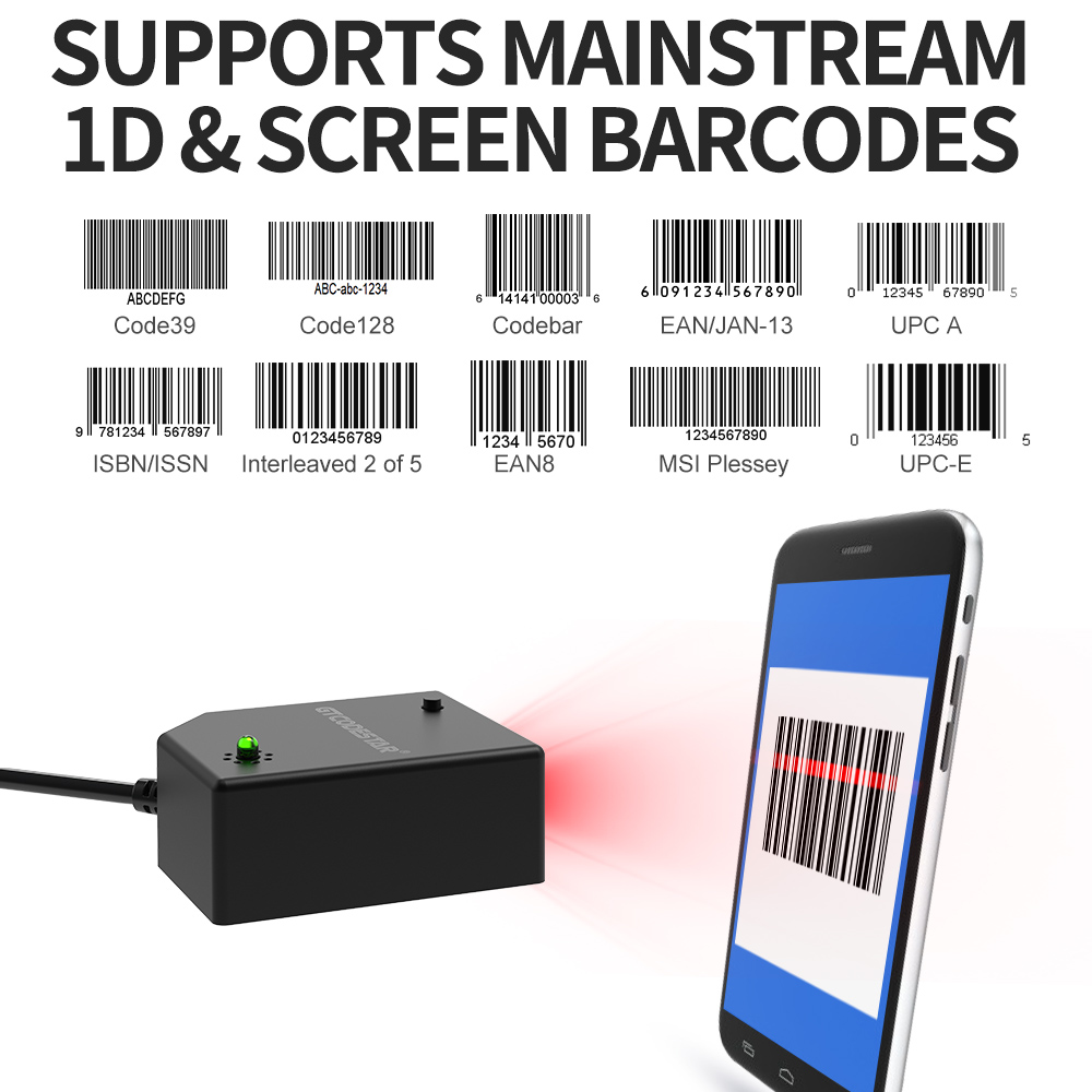 Read all standard 1D barcodes even on electronic screen;