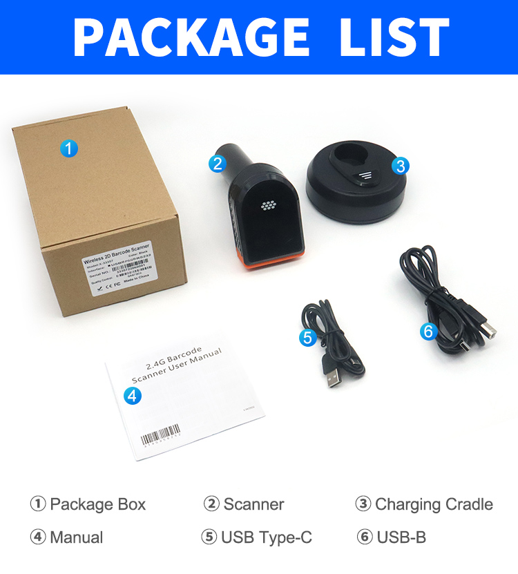 | Item | Wireless 2D Barcode Scanner | ||||||