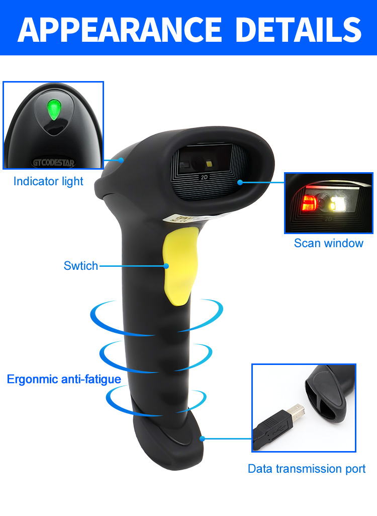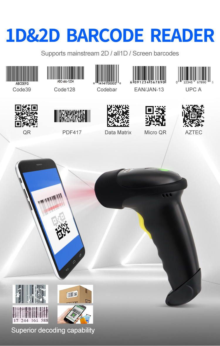 Read all standard 1D and 2D(QR CODE,PDF417,DATE MATRIX) barcodes even on electronic screen;